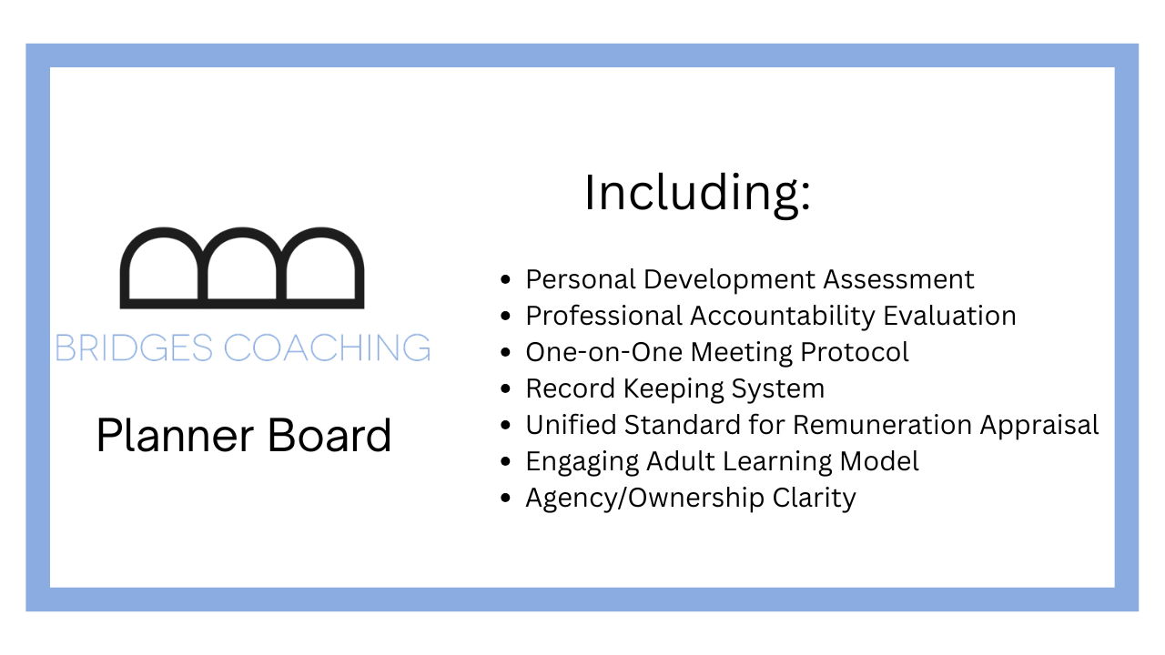 Two personal coaching sessions will be arranged as you set up your unique Bridges Planner Broad.